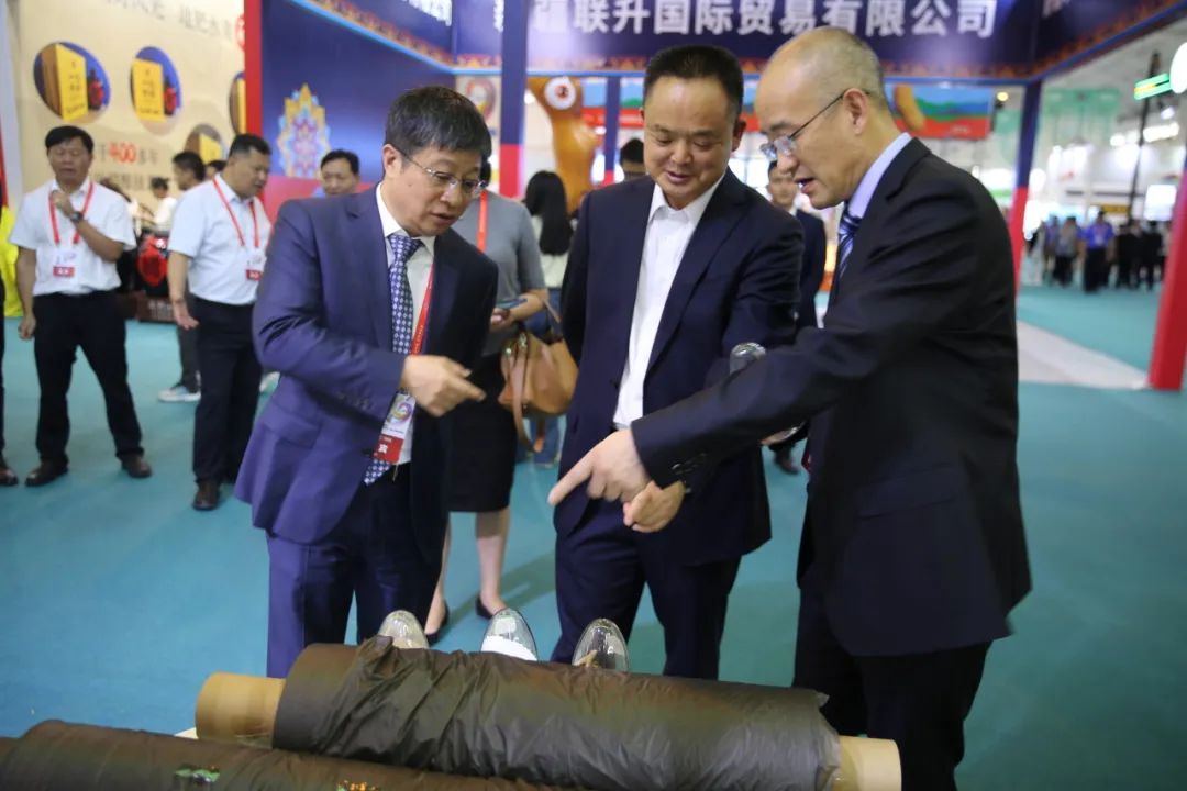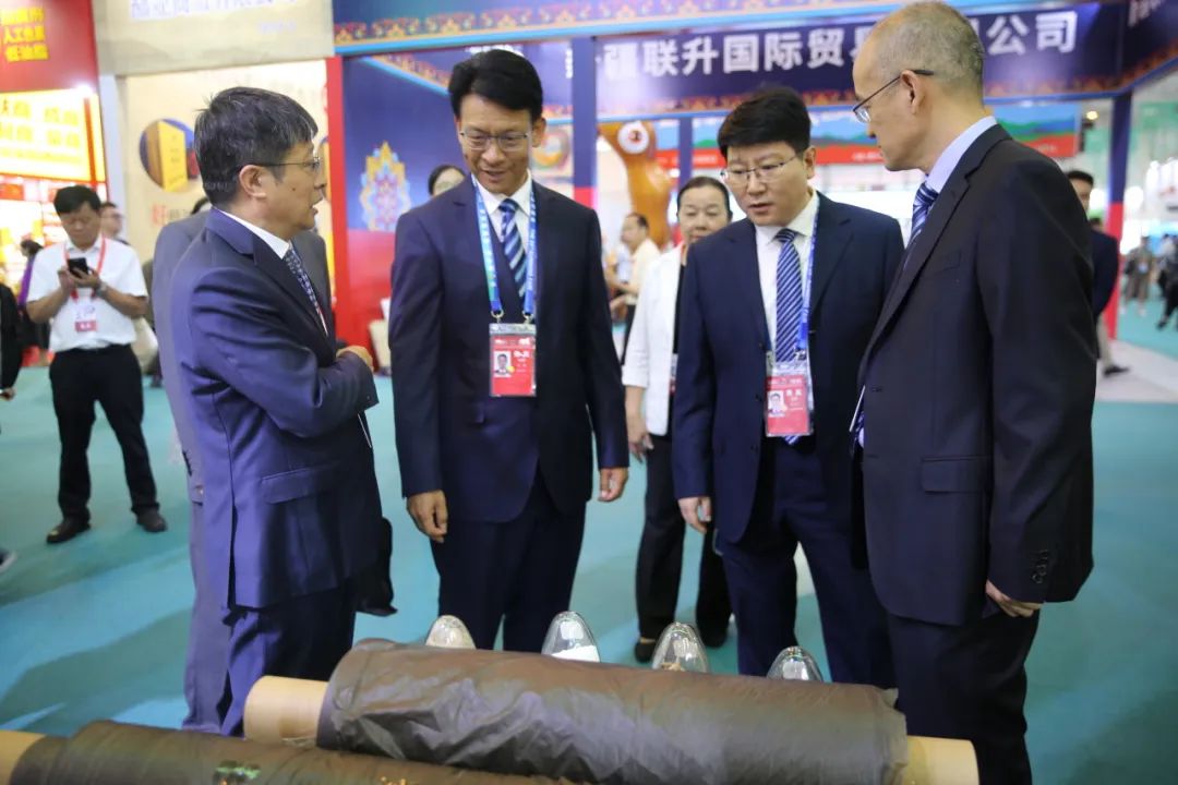 集团党委书记、董事长郭曙光,党委副书记、副董事长、总经理胡良波出席开幕式并在集团展厅推介宣传。开幕式后,省委农办主任、省农业农村厅厅长李琰,临沧市委副书记、市长徐贤等领导到集团展台巡馆、参观,郭曙光、胡良波分别为两位领导介绍了蔗渣可降解地膜目前的研发和中试情况。